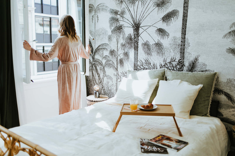 The DIY favourite! Our peel & stick is real non-woven wallpaper with a water-based adhesive. The removable adhesive is designed to leave walls damage free, and make putting up and taking down a breeze.